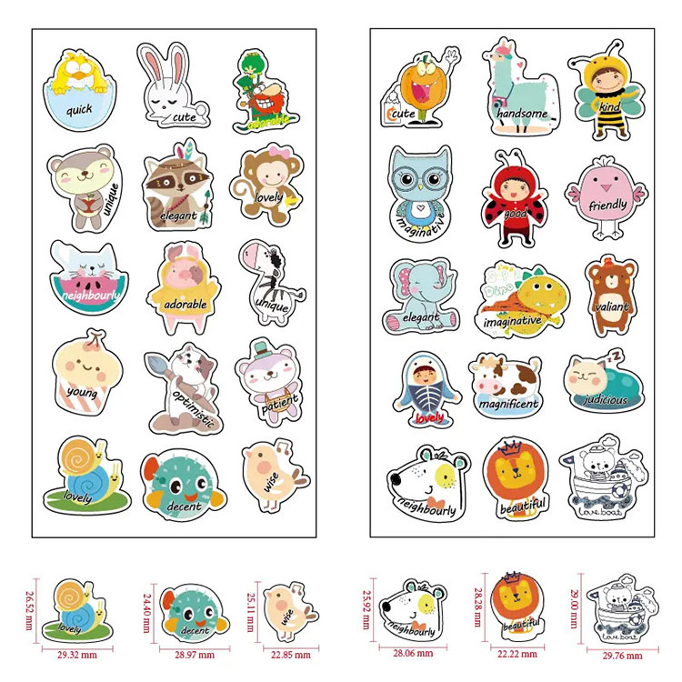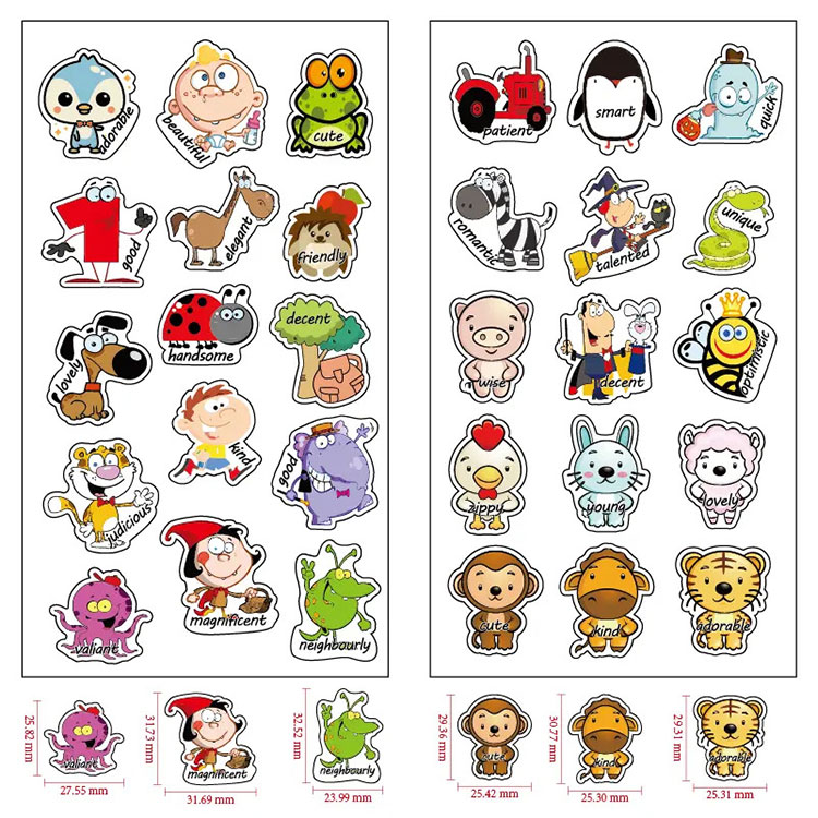 Нашитеанимационни стикери за наградиса проектирани с тонове сладки, обмислени послания, забавни животни и дизайни и брилянтни цветове, за да ги направят по-ангажиращи и вълнуващи за ученици от предучилищна възраст до ученици от началното училище.