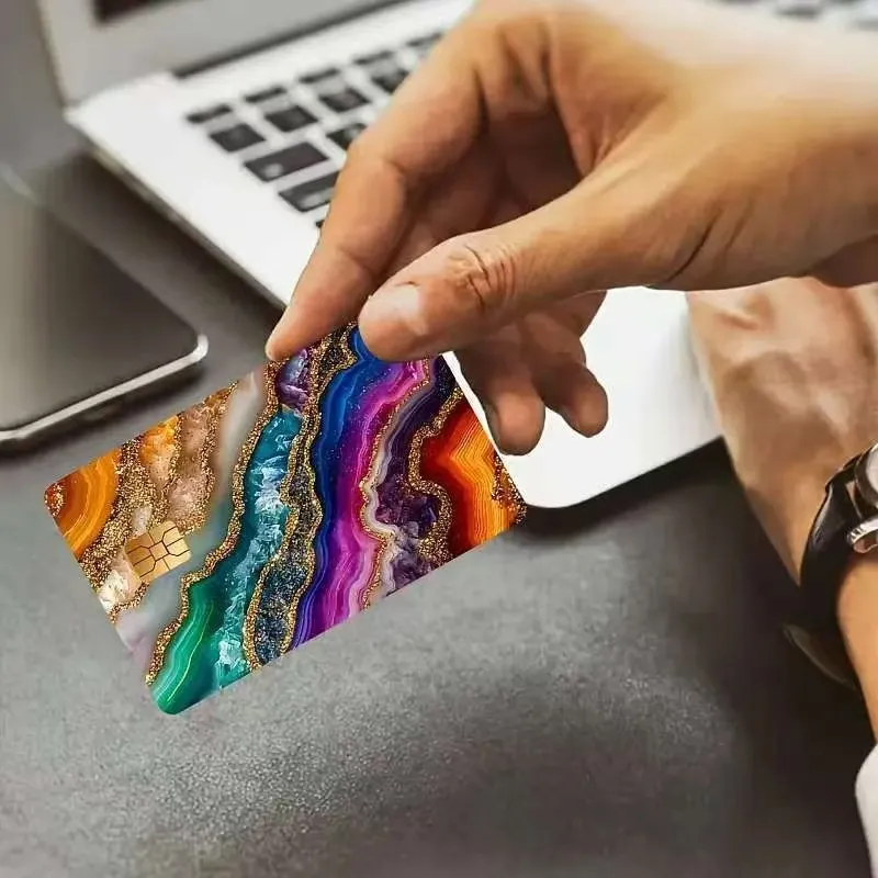 Най-новите продавани стикери за кожата на кредитни карти са повърхностен филм, специално предназначен за кредитни карти. Той е лек и има силна адхезия. Може точно да съответства на размера на кредитната карта. Той може както да украси външния вид на картата, така и да осигури основна защита за картата.