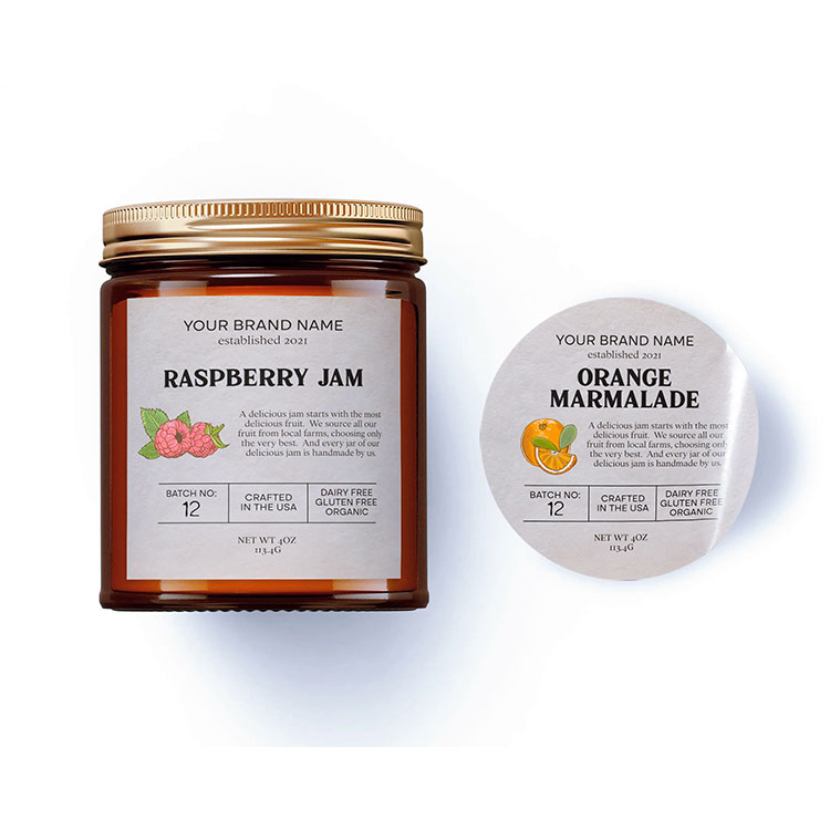 Етикети за сладкоса важна част от бутилките за сладко.Етикети за сладконе само изпълняват функцията за предаване на информация за продукта, но също така играят роля в разкрасяването на опаковката и подобряването на имиджа на марката.Пакет JOJOеетикети за сладкоизползвайте висококачествени материали, съчетани с изискан дизайн и усъвършенствана технология за печат, за да гарантирате, че етикетите са водоустойчиви и устойчиви на мазнини, като същевременно показват богати цветове и деликатни текстури.
