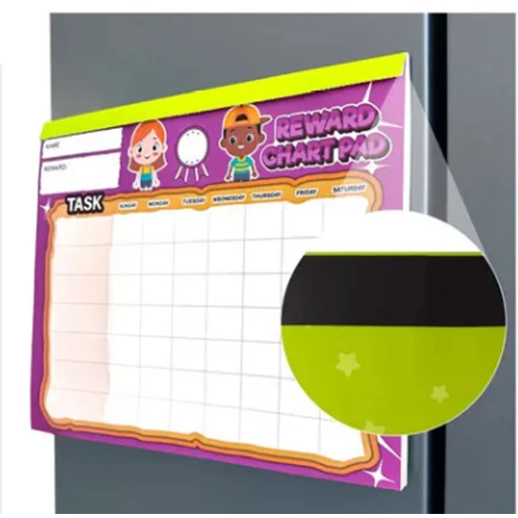Магнитната диаграма на възнаграждението Padcover има линия на сгъване и може да бъде отворена по линията на сгъване за използване, включително маркиране на стикери и стикери на възнаграждение. Екстра голям размер, удобен за wtiting и рисуване, награди стикери, за да помогнат на децата да развиват само-дисциплина.