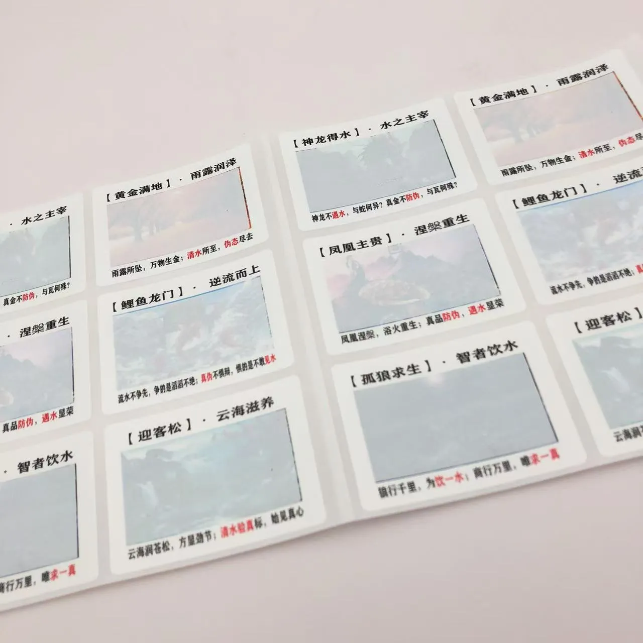 A водочувствителни етикетиинтелигентен материал, отпечатан със специална структура на мастило на водна основа. Когато са изложени на вода или други прозрачни течности, те бързо абсорбират влагата, което кара етикета да стане почти прозрачен за около 1 секунда - разкривайки скрити шарки или текст. След като течността се изпари, някои видове карти могат да се върнат в първоначалното си състояние за многократна употреба.