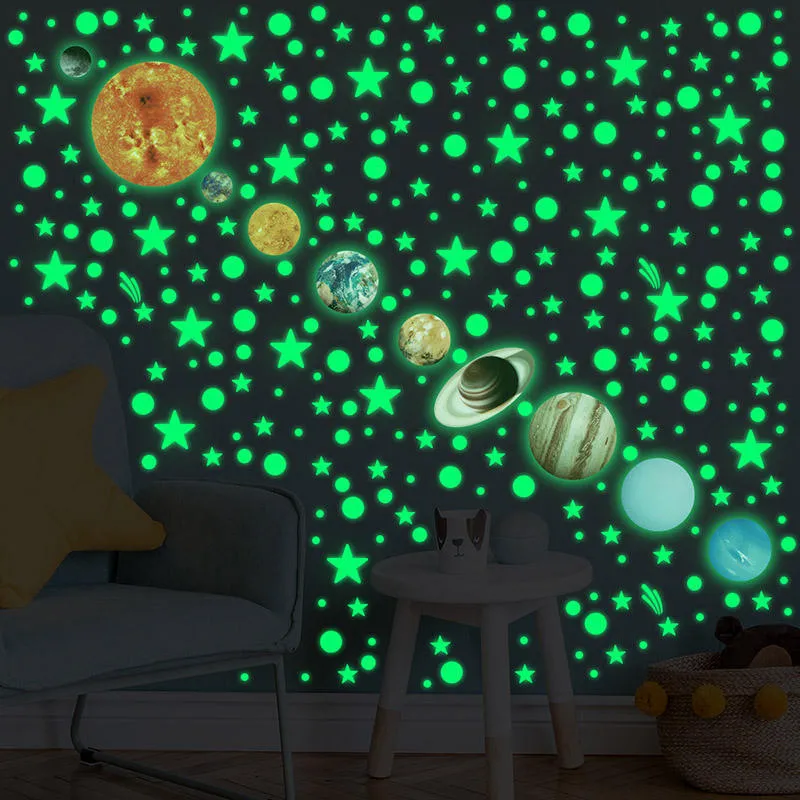 Когато електроните в луминисцентните материали се върнат в стабилно състояние, те освобождават по -рано абсорбираната енергия, която е придружена от излъчването на фотони. Тези фотони са видимата светлина, която можем да видим. Тъй като светещите стикери съдържат голямо количество такива луминисцентни материали, те работят заедно за непрекъснато освобождаване на слаба светлина, което позволява на стикерите да светят в тъмното.