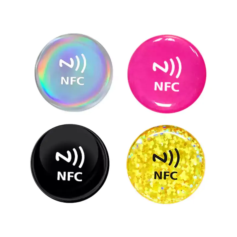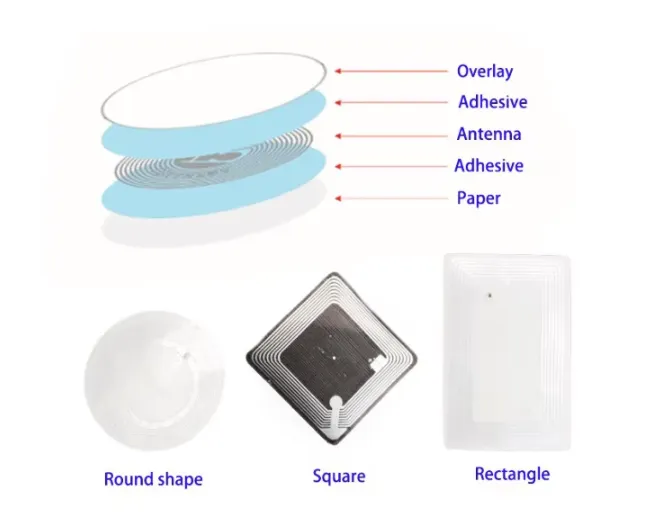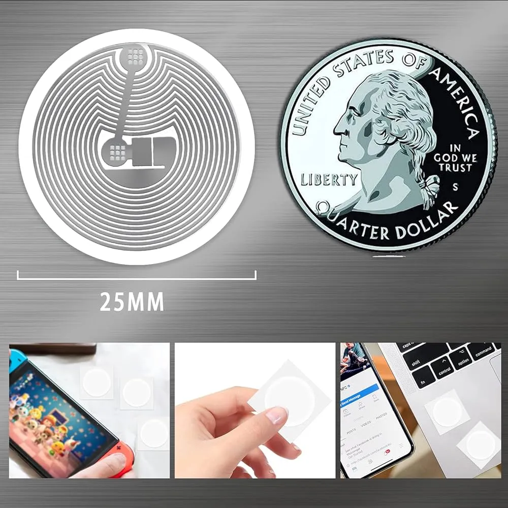 Размер и форма: Стикерите на NFC са малки. Те често са кръгли и с размерите на монета. Едната страна има лепило, така че можете лесно да ги залепите върху неща като плакати, ленти за китки или визитки.