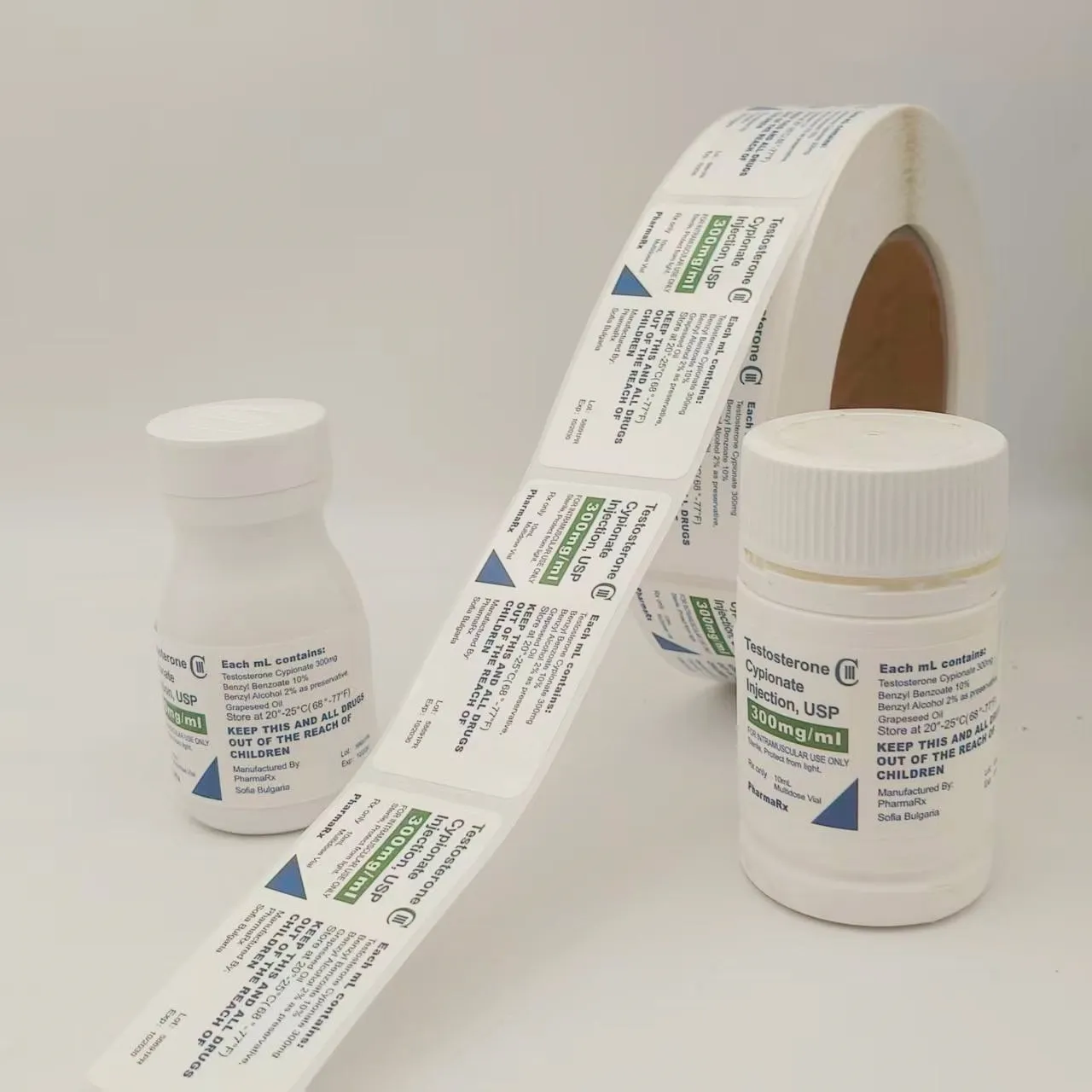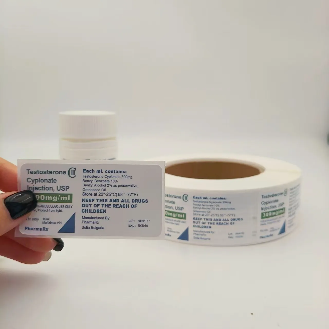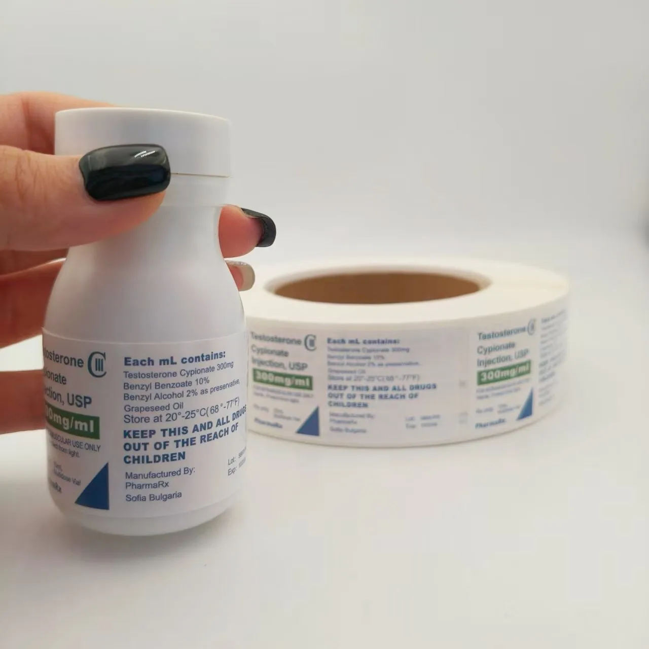 Имената на лекарствата, дозите и инструкциите за употреба на хапчетата са подчертани с удебелен шрифт. Secondary information such as production details and warning statements are arranged in an orderly manner, making it convenient for quick reading. Шрифтът на етикета на бутилката с хапчета е ясен и лесен за разпознаване, като се избягва влиянието на фантастичните дизайни върху разпознаването на информация. The pill bottle label strictly follows local pharmaceutical regulatory standards, ensuring that all necessary information is not omitted, and the format of warning statements, contraindications, etc. is standardized. Материалът на етикета на бутилката с хапчета е устойчив на триене и влагоустойчив и не пада лесно след залепване. Размерът е съобразен с извивката на бутилката, без набръчкване или блокиране на ключова информация.