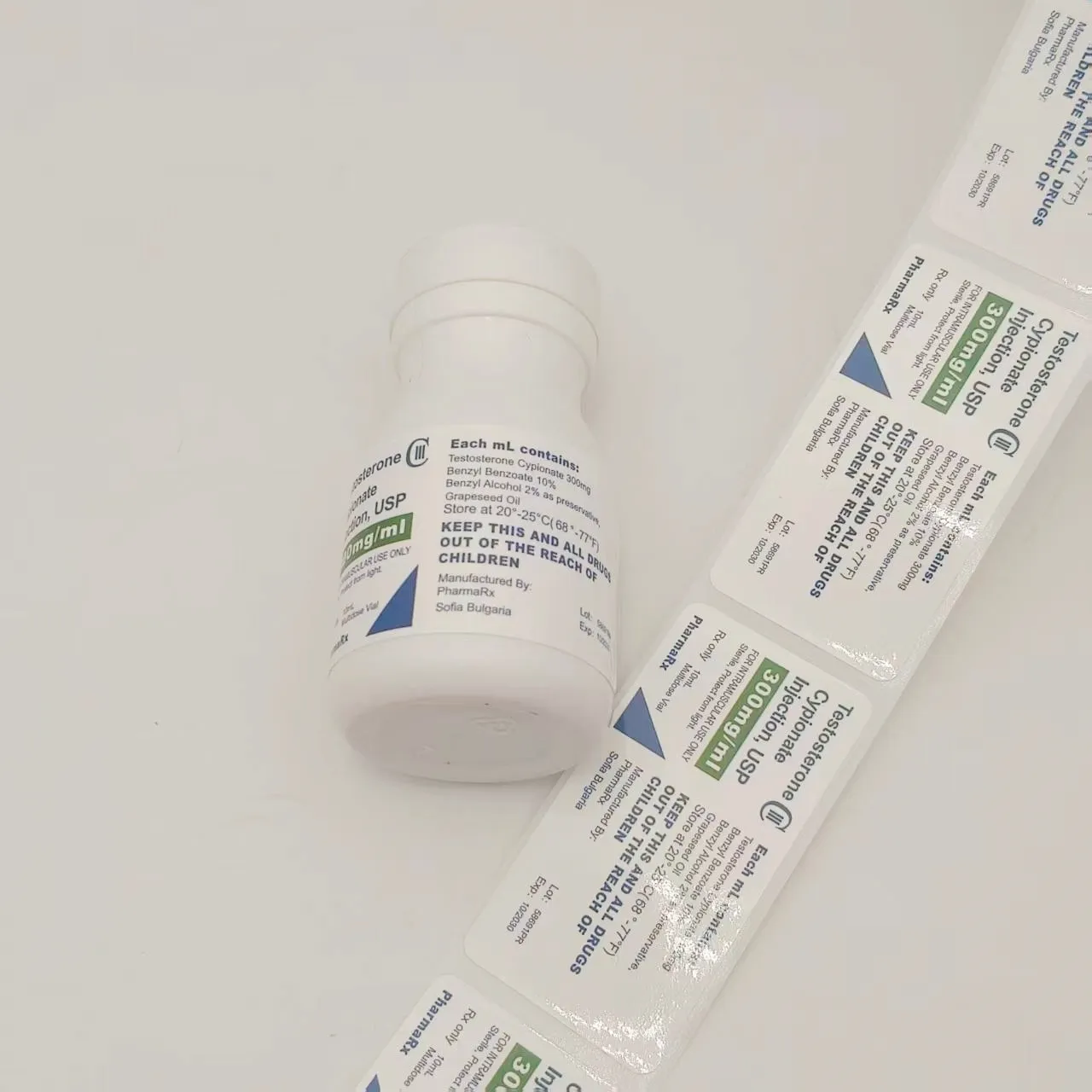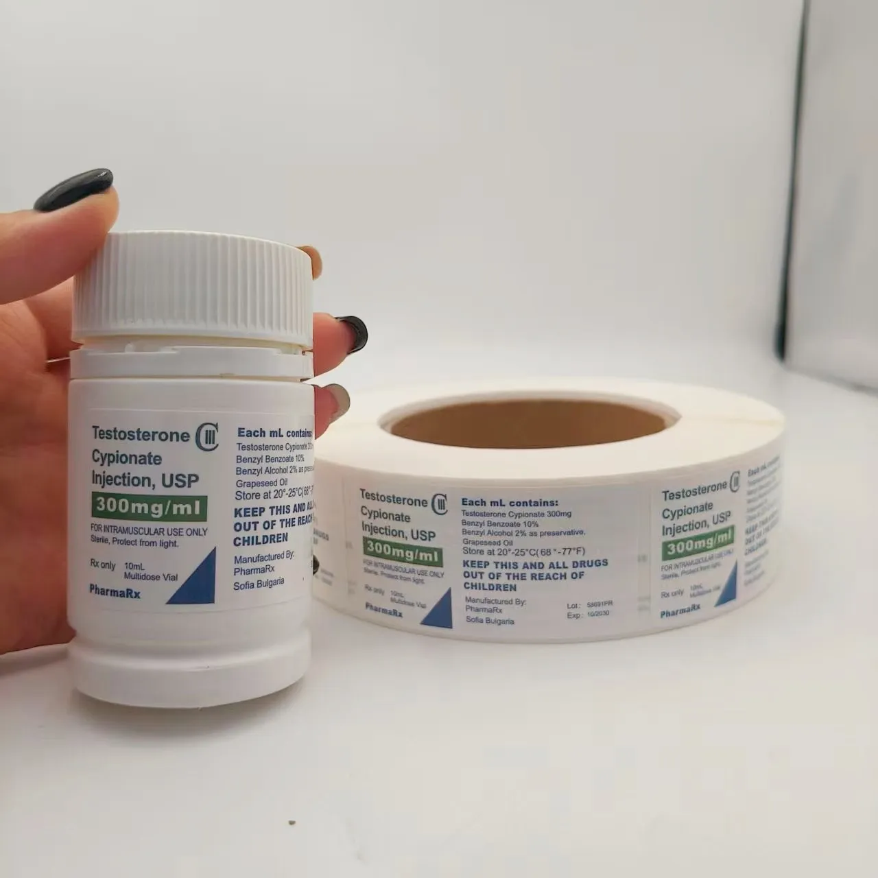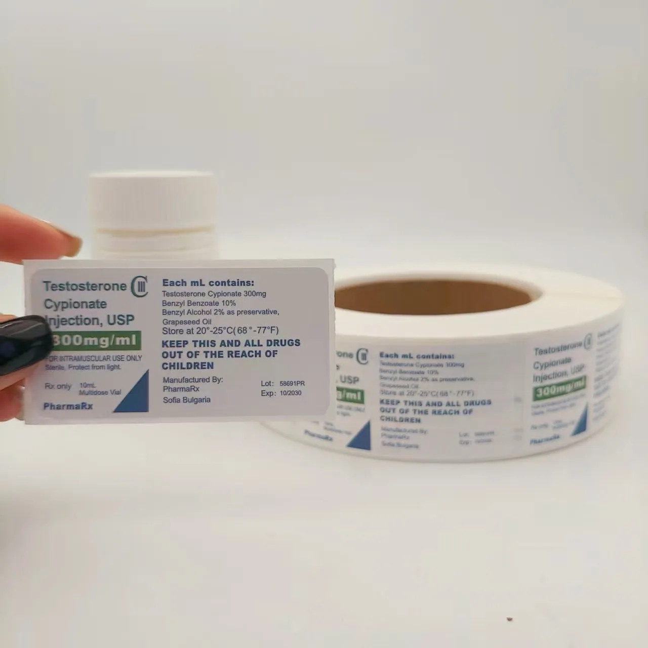 Имената на лекарствата, дозите и инструкциите за употреба на хапчетата са подчертани с удебелен шрифт. Secondary information such as production details and warning statements are arranged in an orderly manner, making it convenient for quick reading. Шрифтът на етикета на бутилката с хапчета е ясен и лесен за разпознаване, като се избягва влиянието на фантастичните дизайни върху разпознаването на информация. The pill bottle label strictly follows local pharmaceutical regulatory standards, ensuring that all necessary information is not omitted, and the format of warning statements, contraindications, etc. is standardized. Материалът на етикета на бутилката с хапчета е устойчив на триене и влагоустойчив и не пада лесно след залепване. Размерът е съобразен с извивката на бутилката, без набръчкване или блокиране на ключова информация.