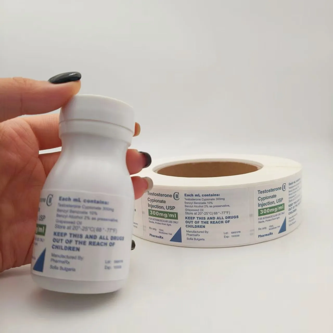 Спецификации на бутилката: Съпоставете диаметъра, височината и формата (кръгла, квадратна и т.н.) на бутилката с лекарство, за да сте сигурни, че етикетът може да бъде напълно залепен, без да надхвърля бутилката или да покрива гърлото и дъното на бутилката.