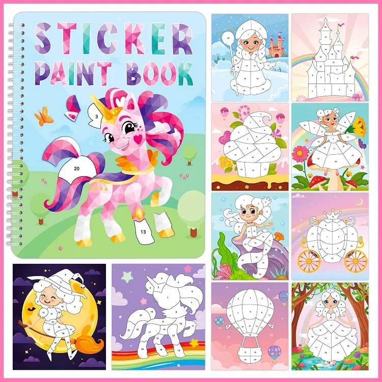 Комбинирайки стикери и картини, книгата за боядисване на стикери стимулира творчеството и култивира множество способности като координация между ръцете и очите и естетическата оценка.
