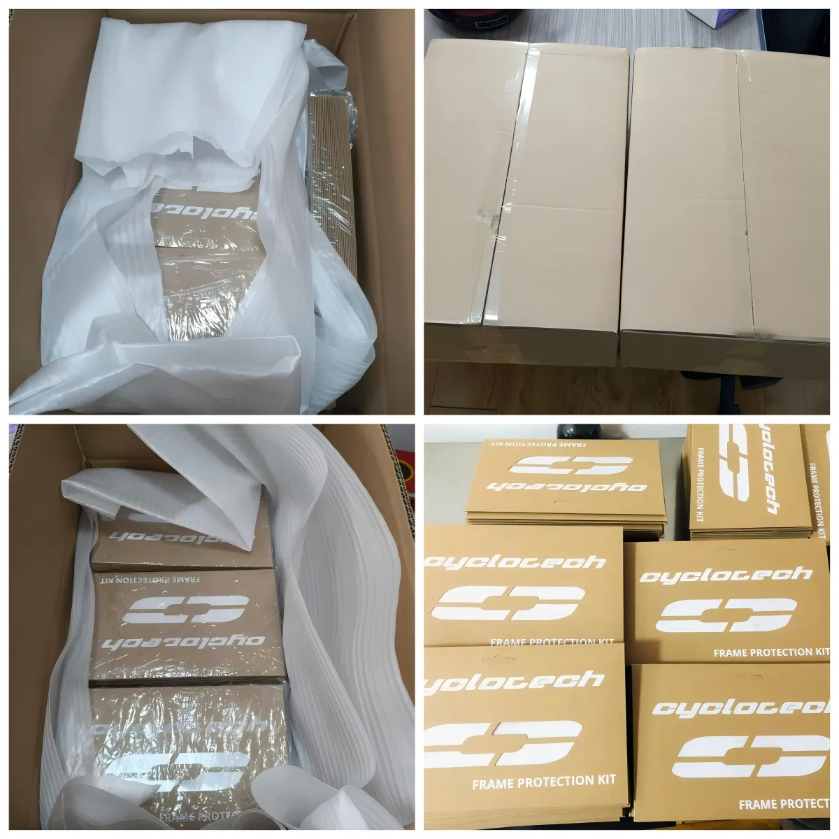 Основният прозрачен дизайн поддържа персонализирано отпечатване на лого или цветово съвпадение (наличен OEM/ODM). Посрещнете персонализирани нужди, като същевременно поддържате защитна функция. Избягвайте скъпите разходи с този издръжлив защитен комплект. Лекият и тънък дизайн няма да добави допълнителна тежест към рамката, запазвайки ефективността на велосипеда непокътната.