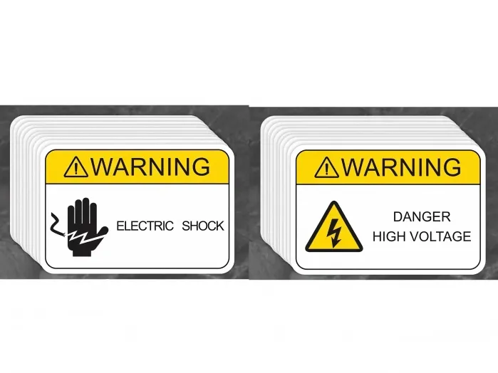 1. СВЕТЛОВО ОТГОВОРНОСТ: Чрез приемането на технология за печат с висока точност текстът, модели и символи на етикетите се гарантира, че е ясен и остър. Дори при лошо осветление или на голямо разстояние те могат бързо да бъдат разпознати. Независимо дали става въпрос за текстови предупреждения като „без пушене“ и „внимавайте за електрическия шок“ или различни предупредителни икони, те могат точно да предадат информация и ефективно да предотвратят инцидентите по безопасност, причинени от неясно разпознаване.