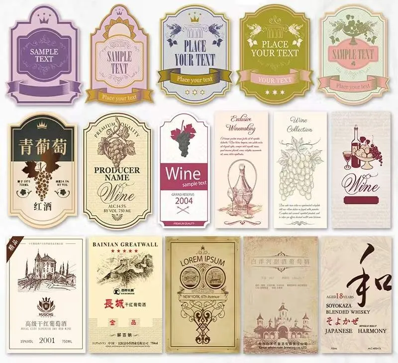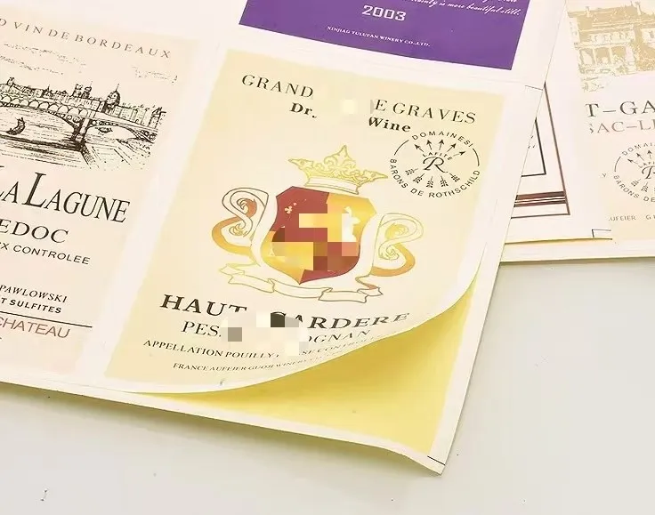 JOJO Pack е специализиран в проектирането и доставката на висококачествени стикери за бутилки вино, критично решение за етикети, което подобрява визуалната привлекателност и идентичността на марката на винените продукти. Стикерите за бутилка вино JOJO Pack са напълно адаптивни, за да отговорят на разнообразни нужди на клиентите, независимо дали става въпрос за премиум марки вина.