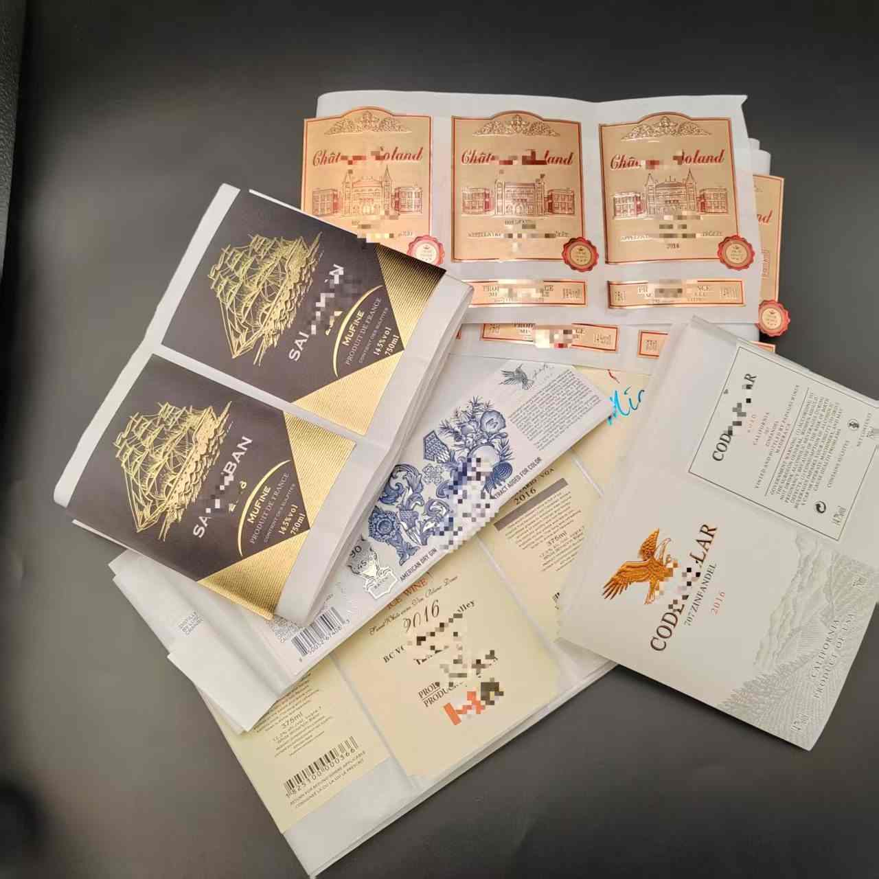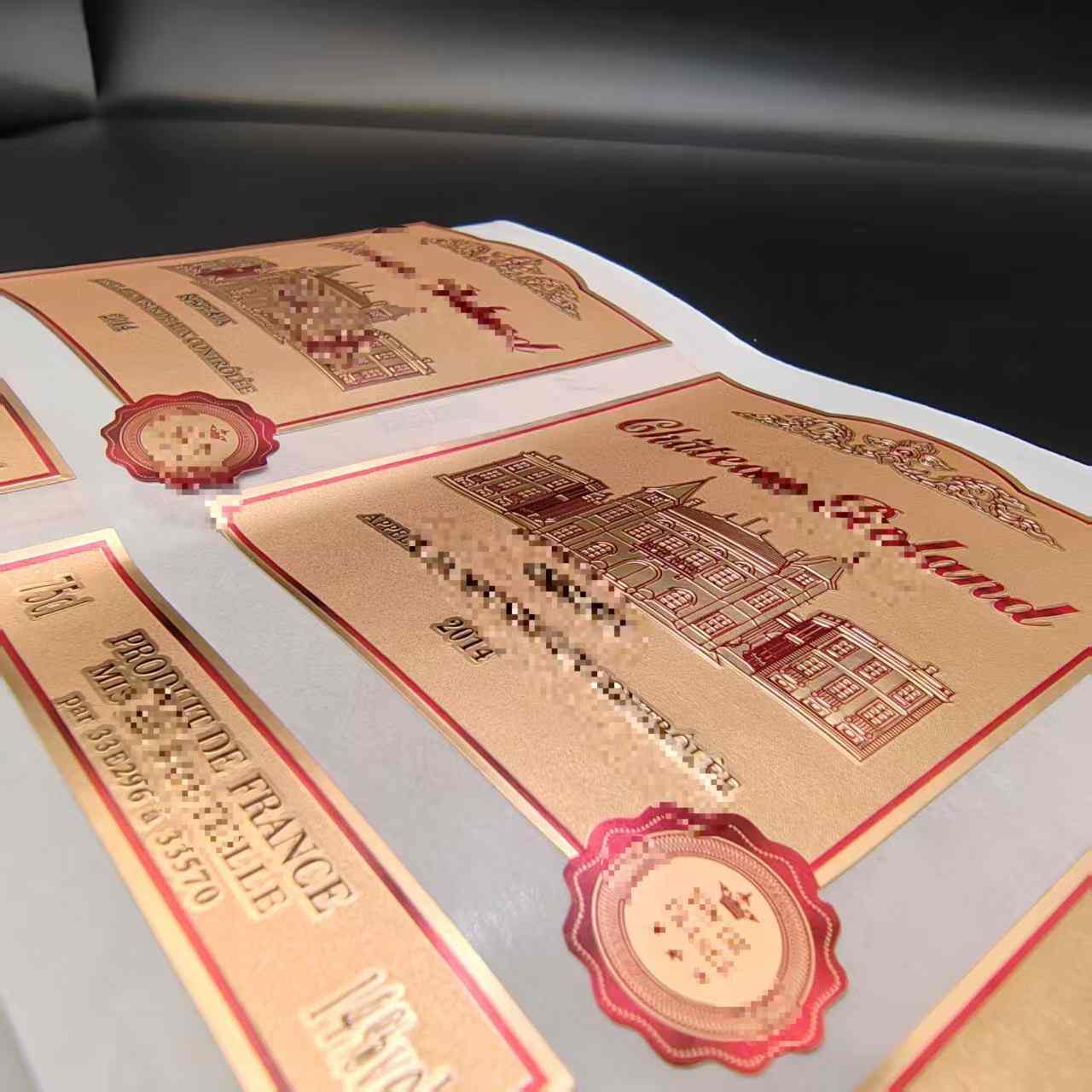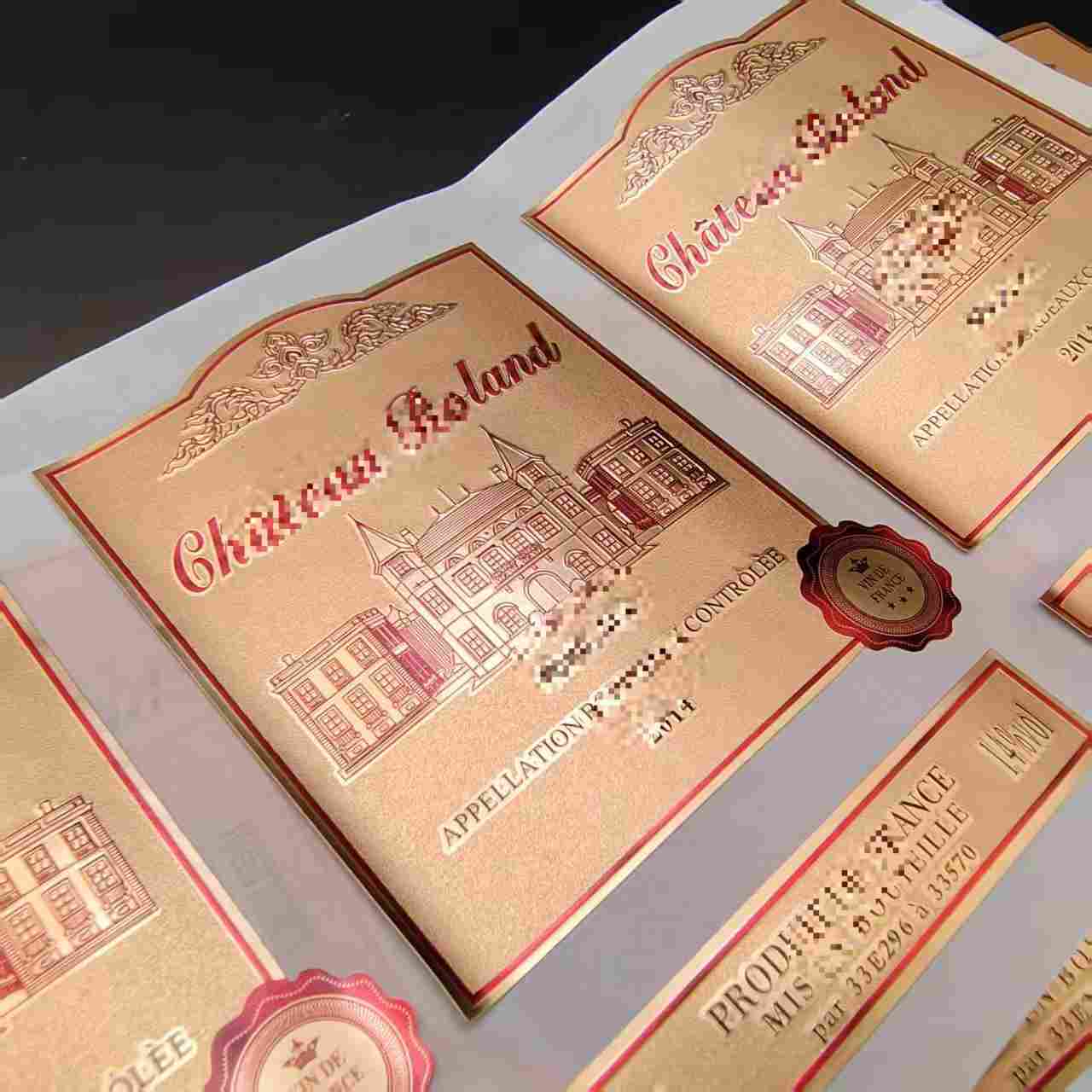 Стикерите за бутилки вино са изработени от висококачествен PVC материал, персонализирани PVC водоустойчиви позлатени етикети за вино имат отлична устойчивост на вода и влага.