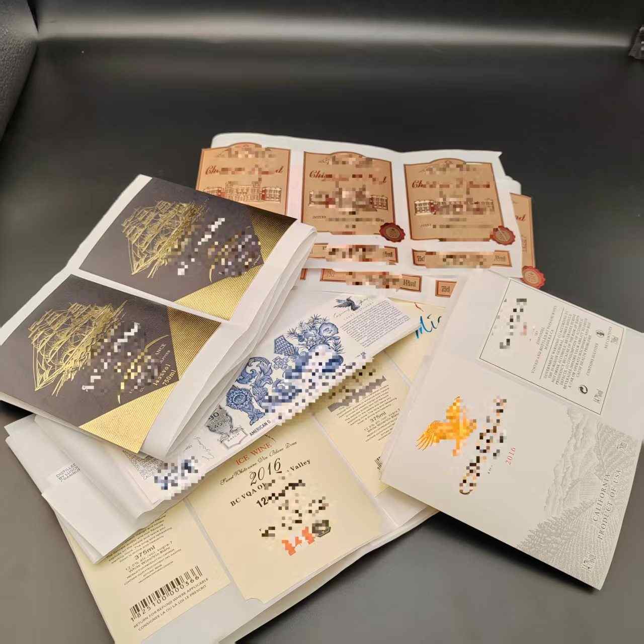 О: Да, можете напълно да персонализирате дизайна на етикетите на виното, за да отразяват стила на тяхната марка. Това включва елементи като лога на марката, цветове, шарки, метални фолиа, матови текстури и т.н.
